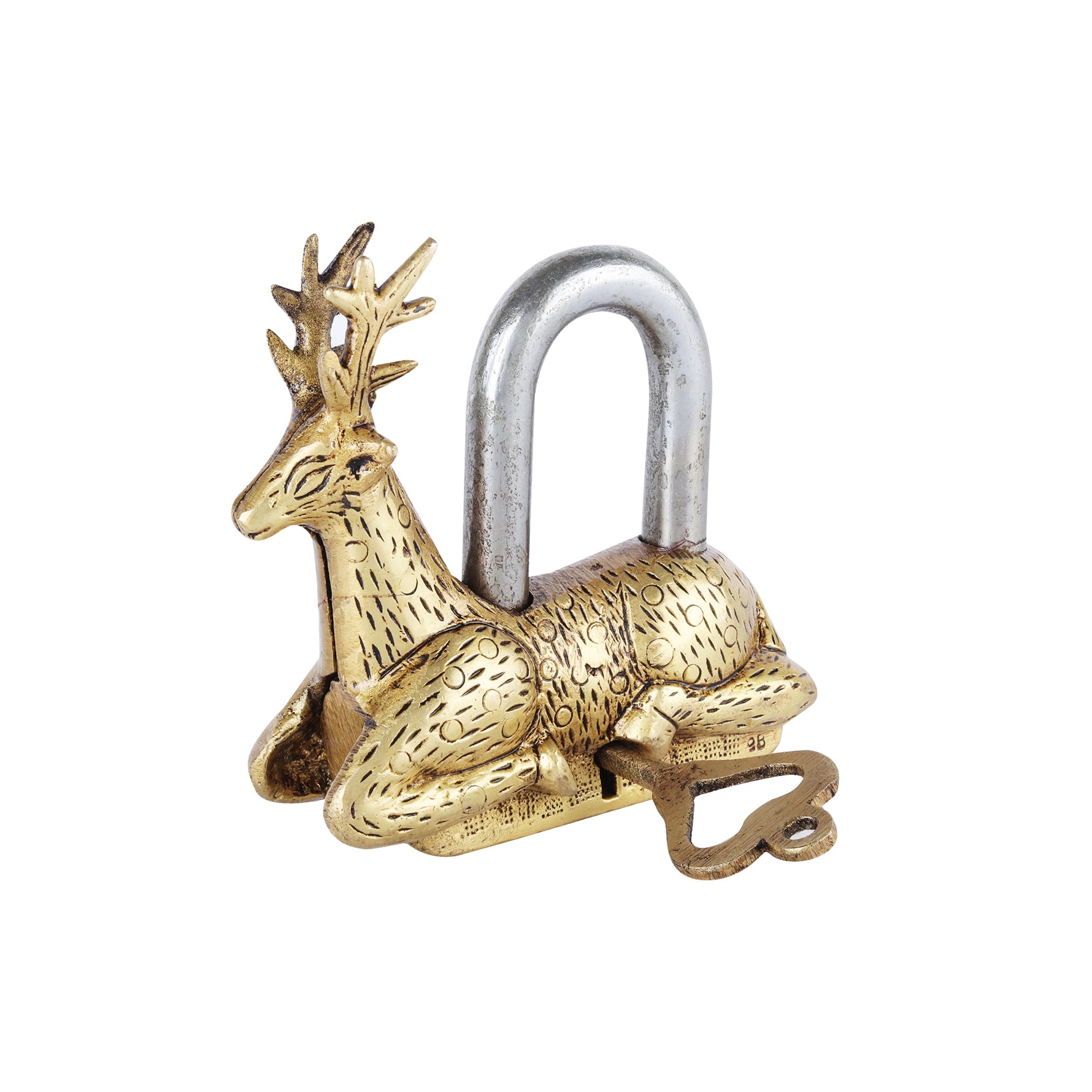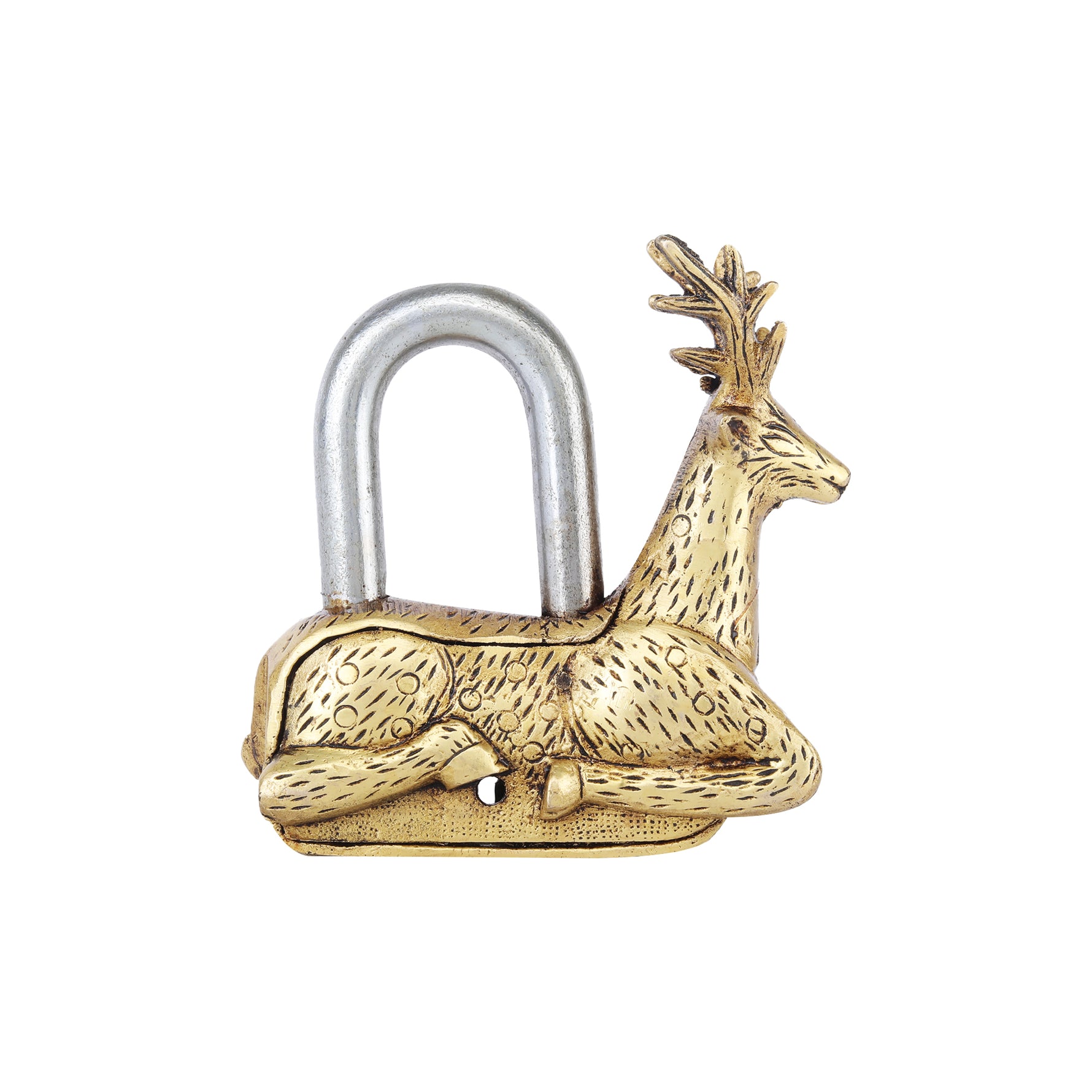 Introducing ShreeYaash's Brass Deer Lock—a distinguished accessory that merges practical security with artistic sophistication. Forged from authentic pure brass, this lock showcases meticulous detailing of a graceful deer, reflecting superior craftsmanship. The material's natural resilience guarantees dependable performance across years of use, while its warm metallic sheen adds refinement to any setting.