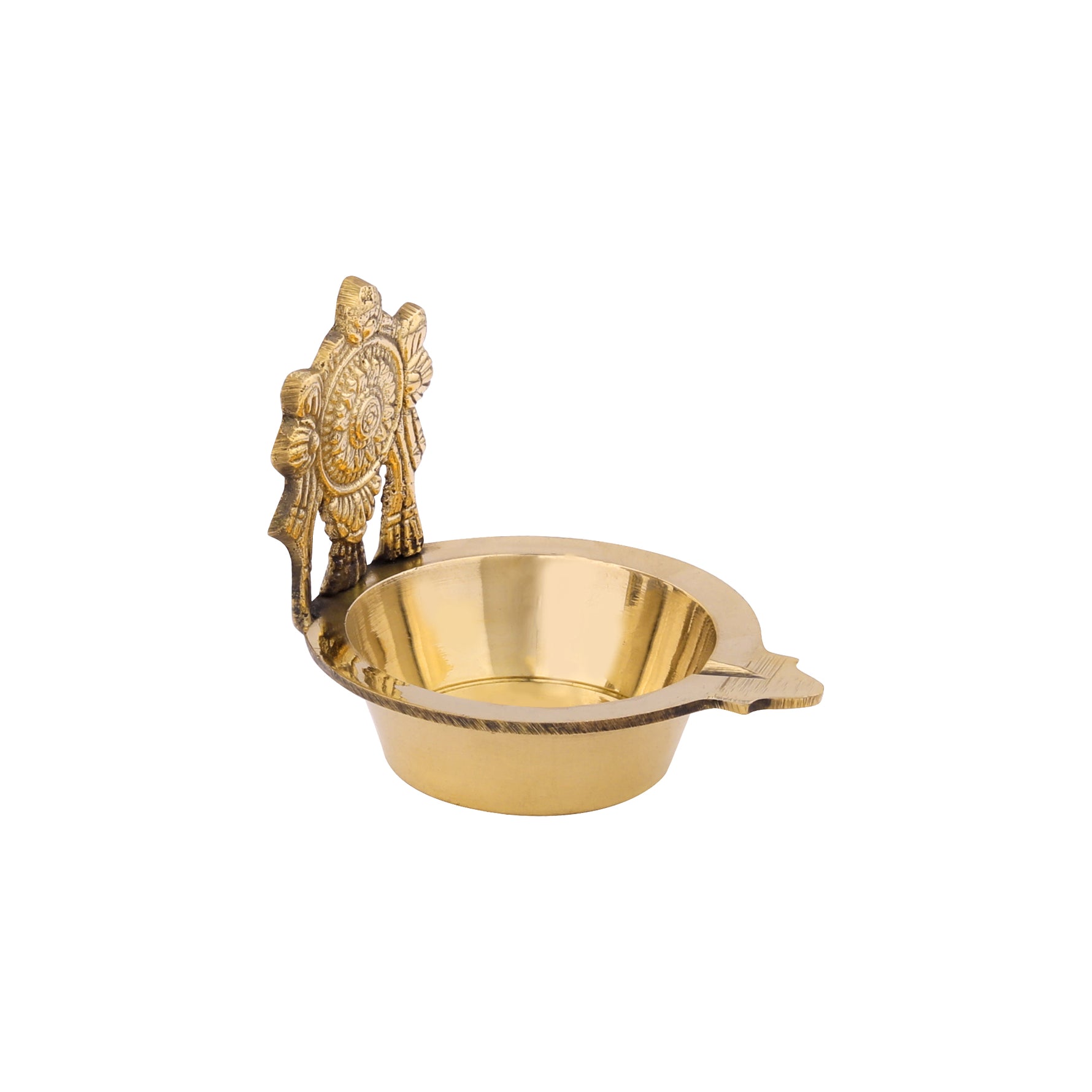 Shreeyaash Shankh Chakra Tilak Diya made from shiny brass, this diya is perfect for brightening up your pooja rituals, home decor, or gifting to loved ones. Its playful design brings a joyful glow to any space, making every moment special and spirited. Light it up and let the good vibes flow!