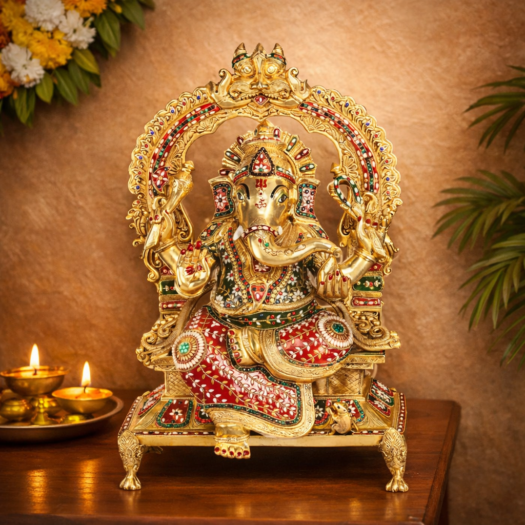 ✔ Design – Decorative Throne Sitting Ganesh Idol