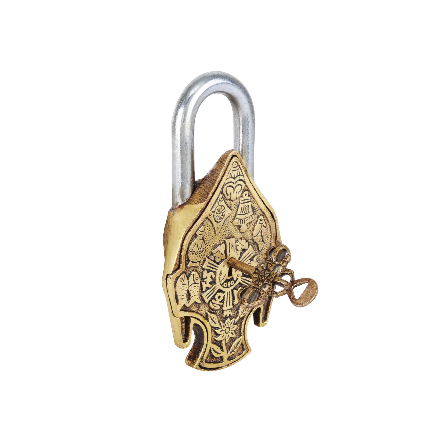 Crafted from 100% pure brass, this exquisite Buddha Face Lock combines functional security with spiritual artistry. Each piece showcases meticulous detailing that captures the serene expression of Buddha, making it an ideal decorative addition to any space. The robust brass construction ensures durability and longevity, while its unique design serves as a meaningful gift for those who appreciate both craftsmanship and mindfulness.