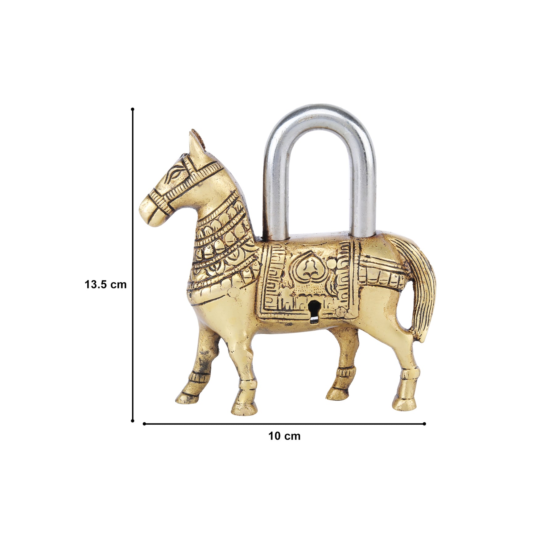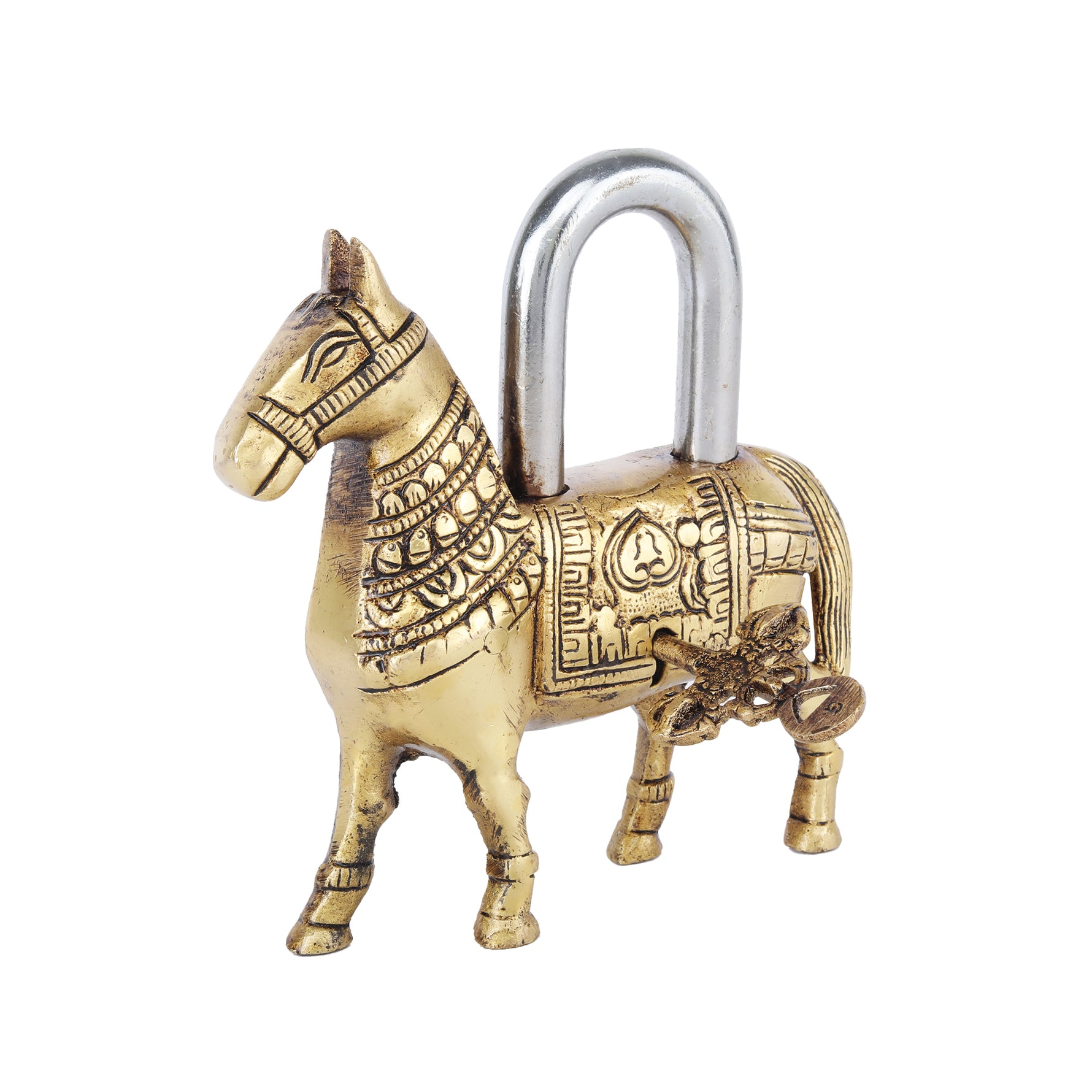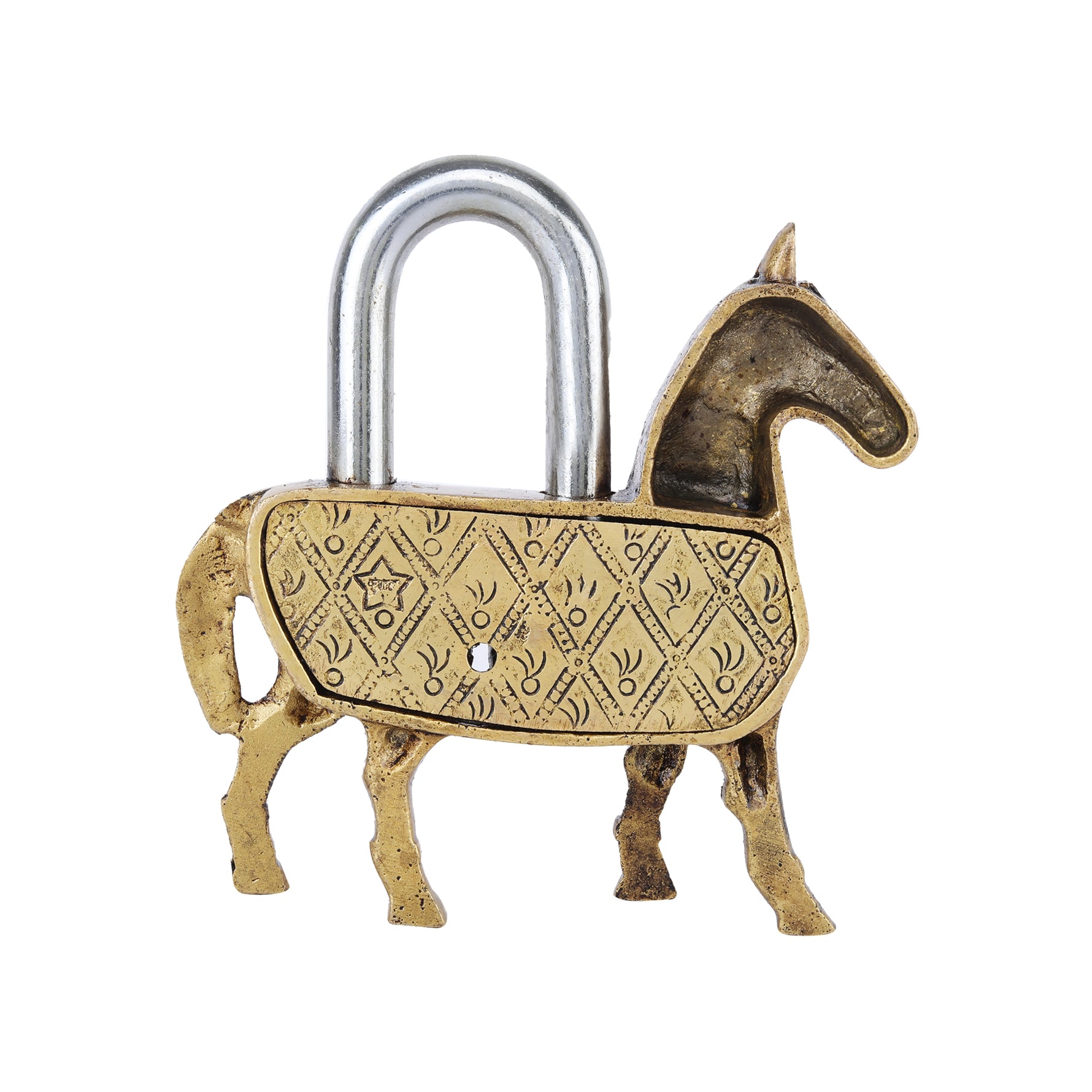 Crafted from 100% pure brass, this exquisite horse lock exemplifies traditional craftsmanship and timeless elegance. The intricate design captures the majestic form of a horse, making it an exceptional decorative piece and functional lock mechanism. Ideal for securing doors, chests, or cabinets while adding a touch of sophistication to any space. Its durability and corrosion-resistant properties ensure lasting performance.