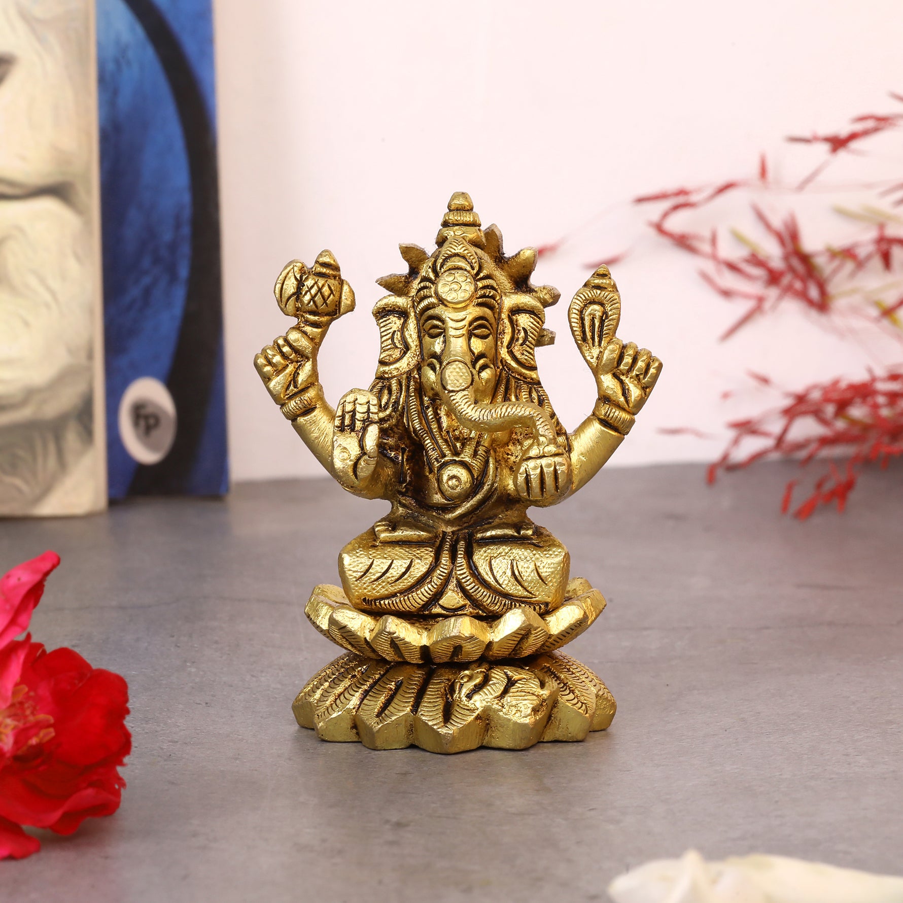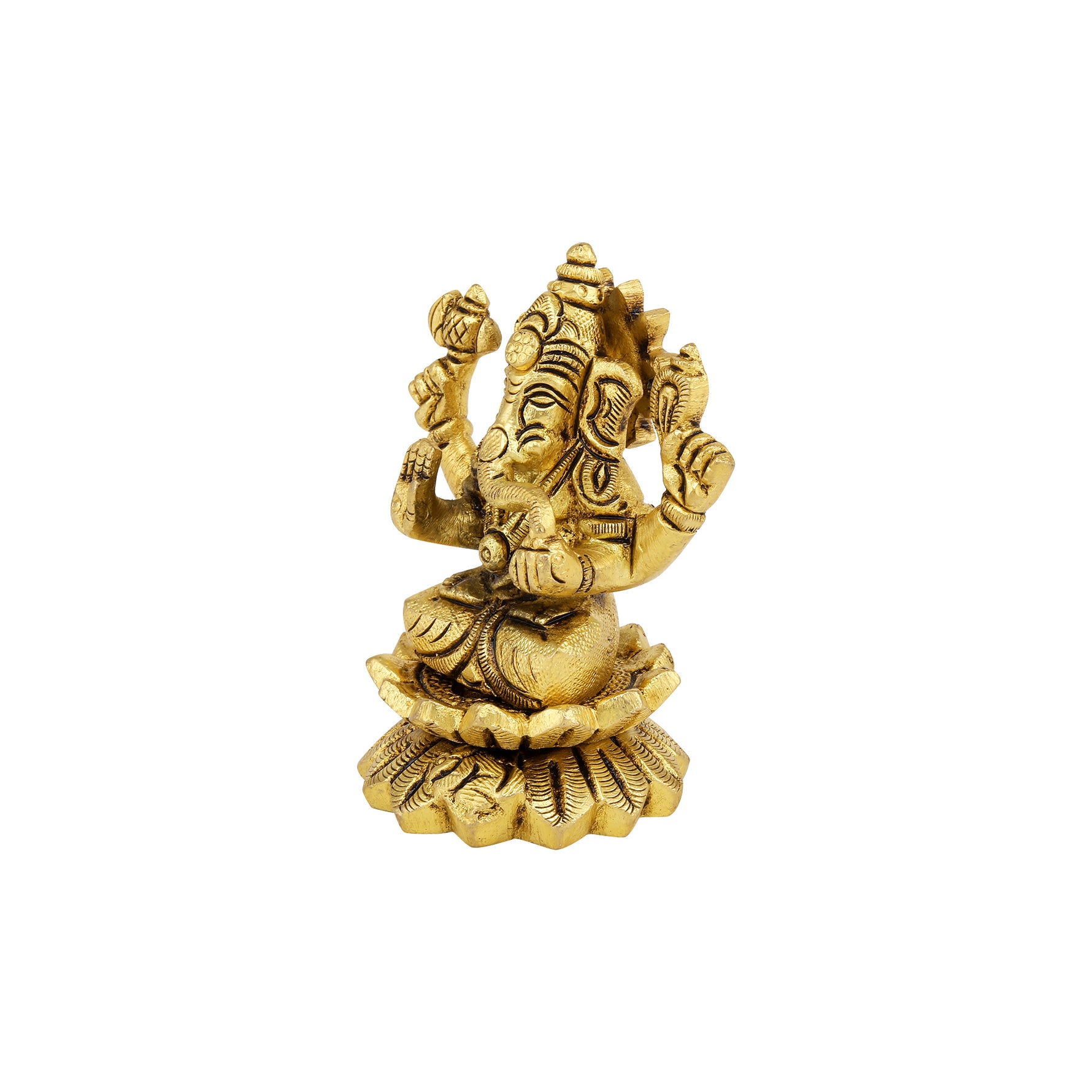Crafted from 100% pure brass, the Brass Kamal Ganesh Ji by Shreeyaash embodies the essence of peace, prosperity, and wellness. This intricately designed idol serves not only as a sacred centerpiece for your pooja rituals but also enhances the ambiance of any home decor. Its elegant craftsmanship makes it an ideal gift to bless loved ones with harmony and good fortune. Perfectly balancing spiritual significance with aesthetic appeal, it is a valuable addition to both traditional worship and modern living spaces.