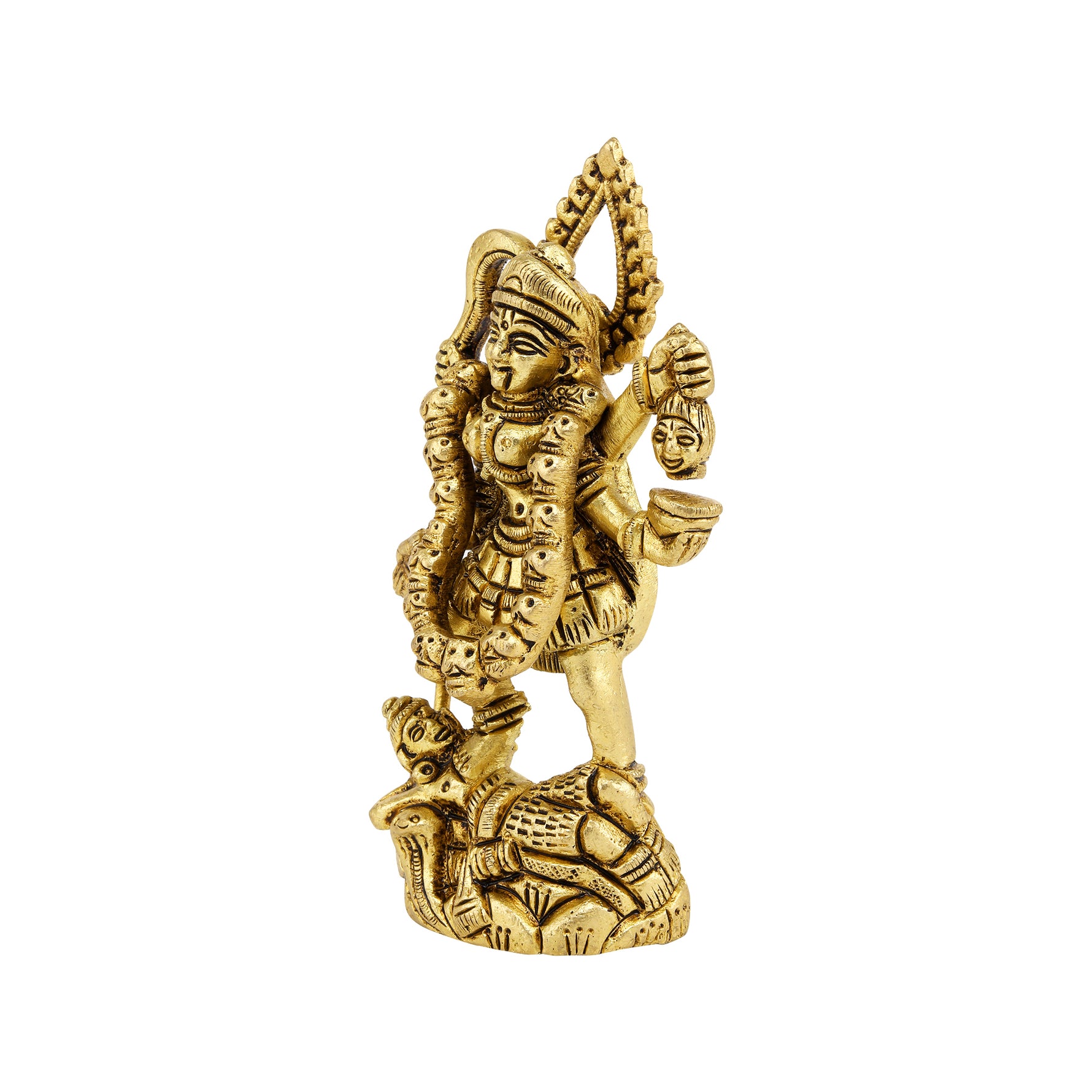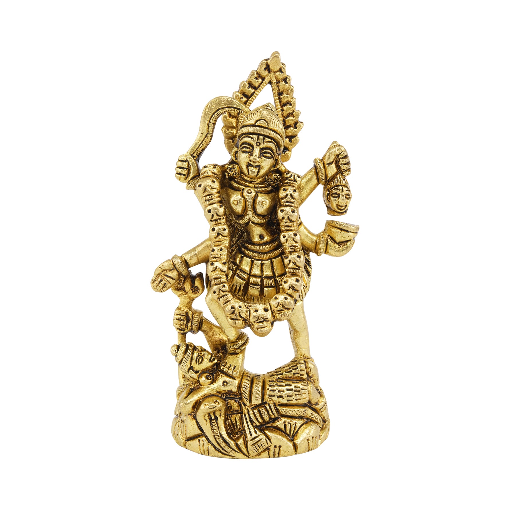 The Kaali Maa Brass Idol from Shreeyaash is crafted from 100% pure brass, embodying the divine power of Shakti. This idol represents transformation, liberation, and the cyclical nature of existence, including birth and death. Ideal for enhancing your home, enriching pooja rituals, or as a meaningful gift, it serves as a profound symbol of spiritual energy and renewal.