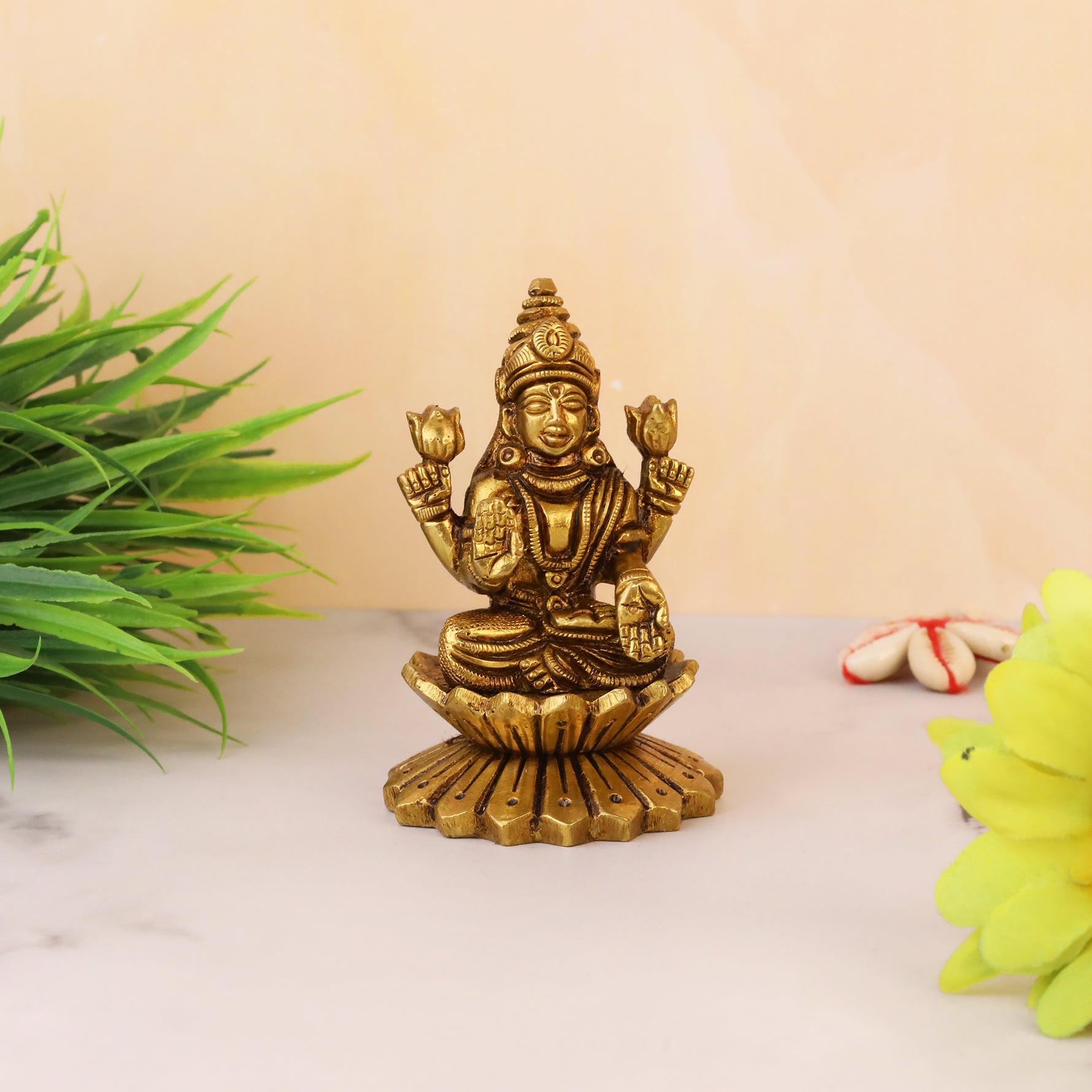 Crafted from 100% pure brass, the Kamal Laxmi Brass Idol offers a blend of spiritual significance and exquisite craftsmanship. Ideal for pooja rituals, it enhances your sacred space with its durable and polished finish, ensuring lasting beauty. Its elegant design also makes it a refined choice for home decor or a thoughtful gift to convey blessings and prosperity. This idol embodies tradition with quality, supporting your devotional and aesthetic needs.
