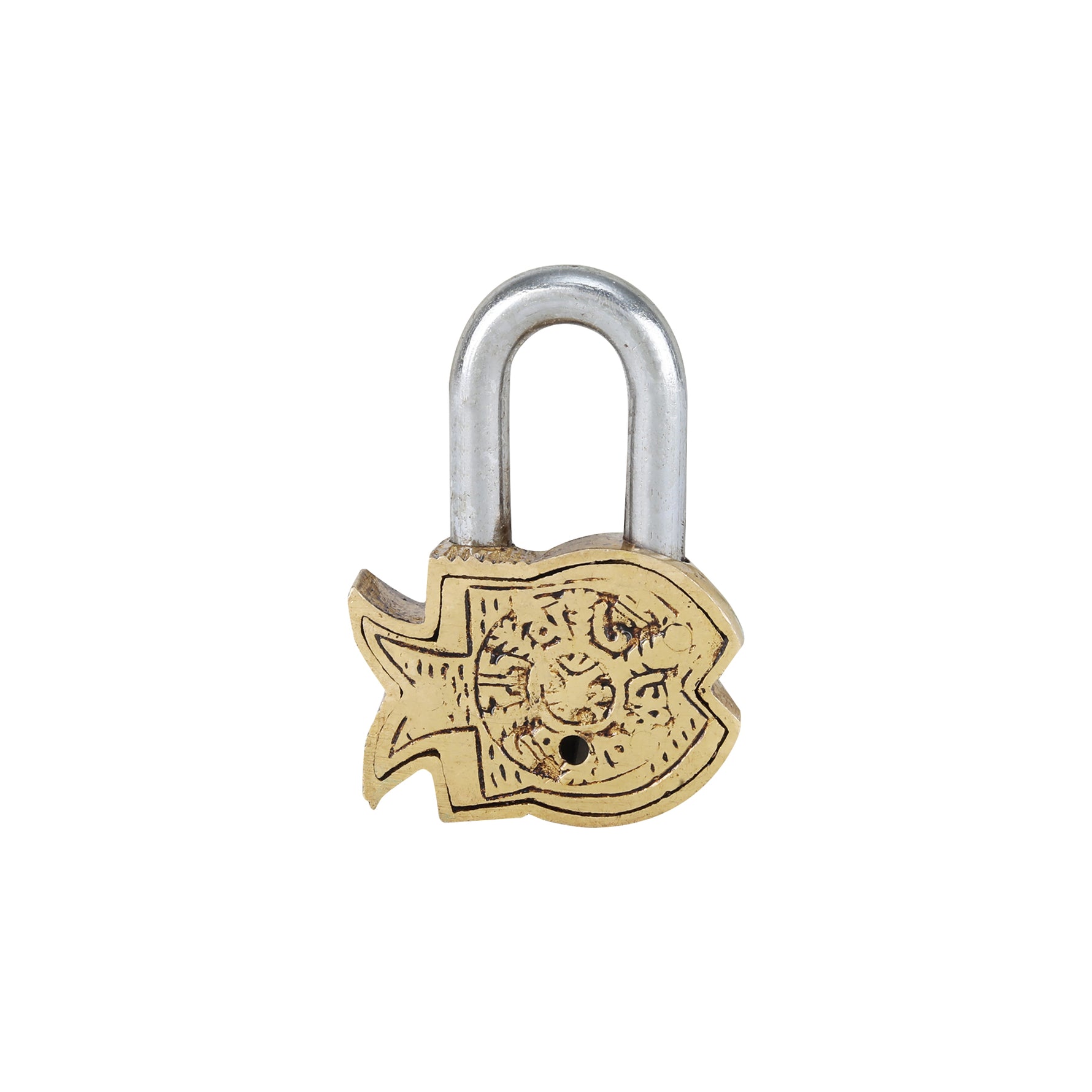 Crafted from 100% pure brass, this exquisite fish lock combines traditional artistry with functional elegance. The intricate design captures the graceful form of a fish, making it an ideal decorative accent for cabinets, boxes, or treasure chests. Its robust construction ensures reliable performance while adding a touch of sophistication to any space. Perfect for collectors and those seeking a meaningful gift, this brass lock reflects superior craftsmanship and timeless appeal. A versatile piece that merges utility with aesthetic charm.