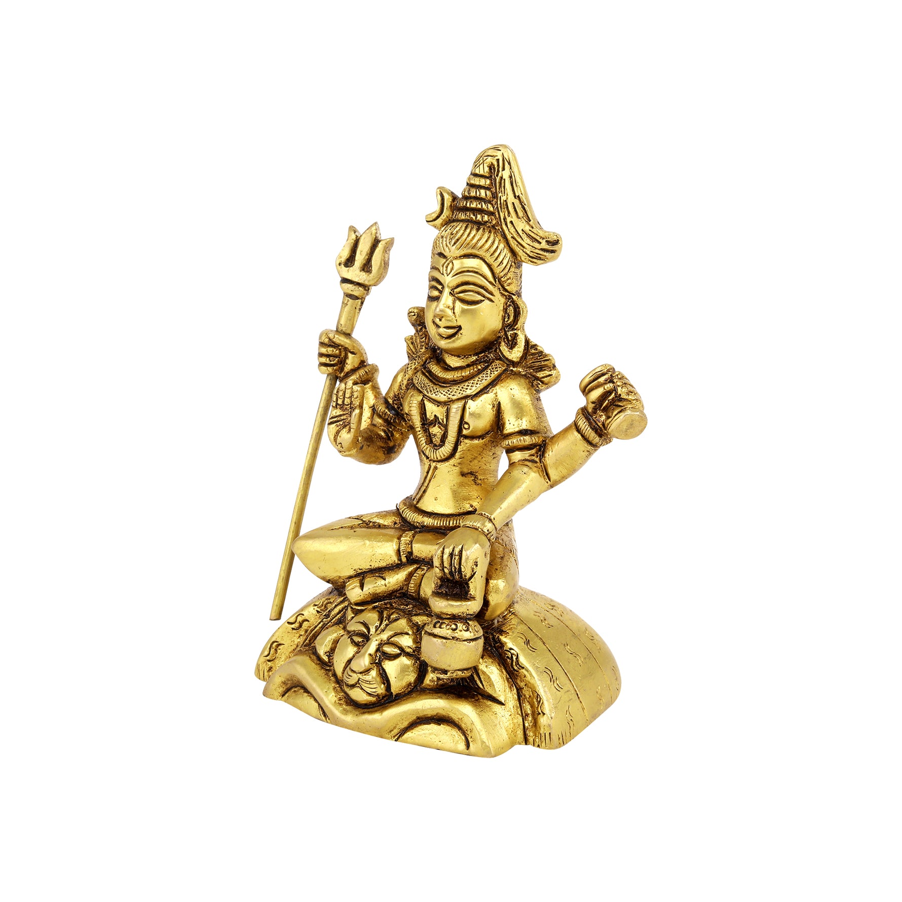 This Shiva idol serves not only as a powerful symbolic figure but also as a meaningful focal point for meditation and devotion, enhancing spiritual ambiance in any space. Its durable brass composition ensures longevity, making it an ideal addition for home sanctuaries, pooja rooms, or as a thoughtful, sacred gift. The intricate detailing reflects traditional craftsmanship, reinforcing its authenticity and reverence.