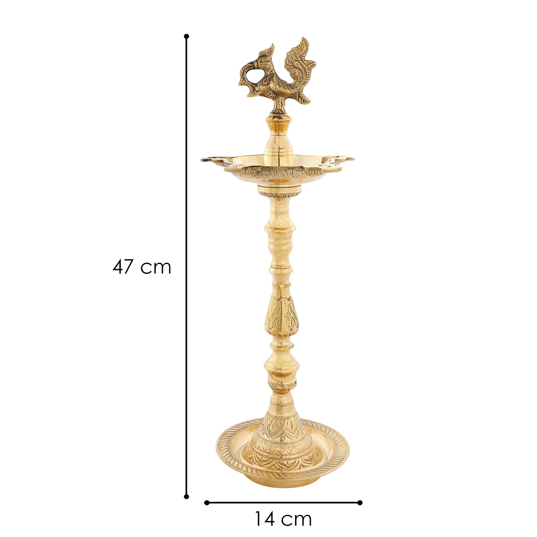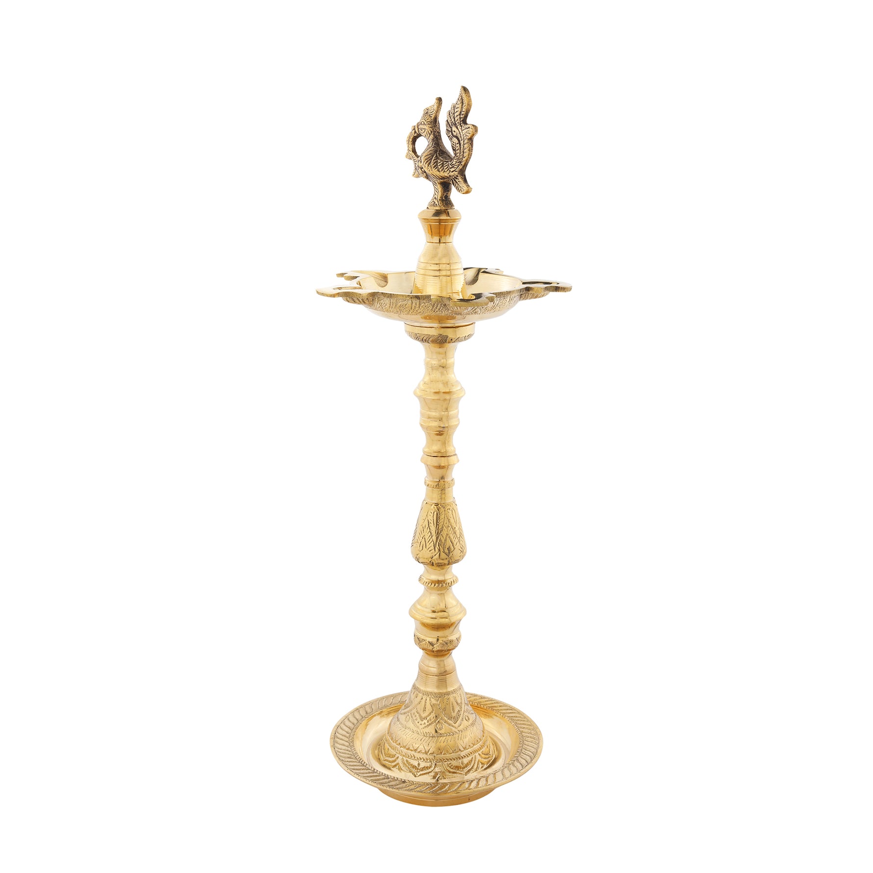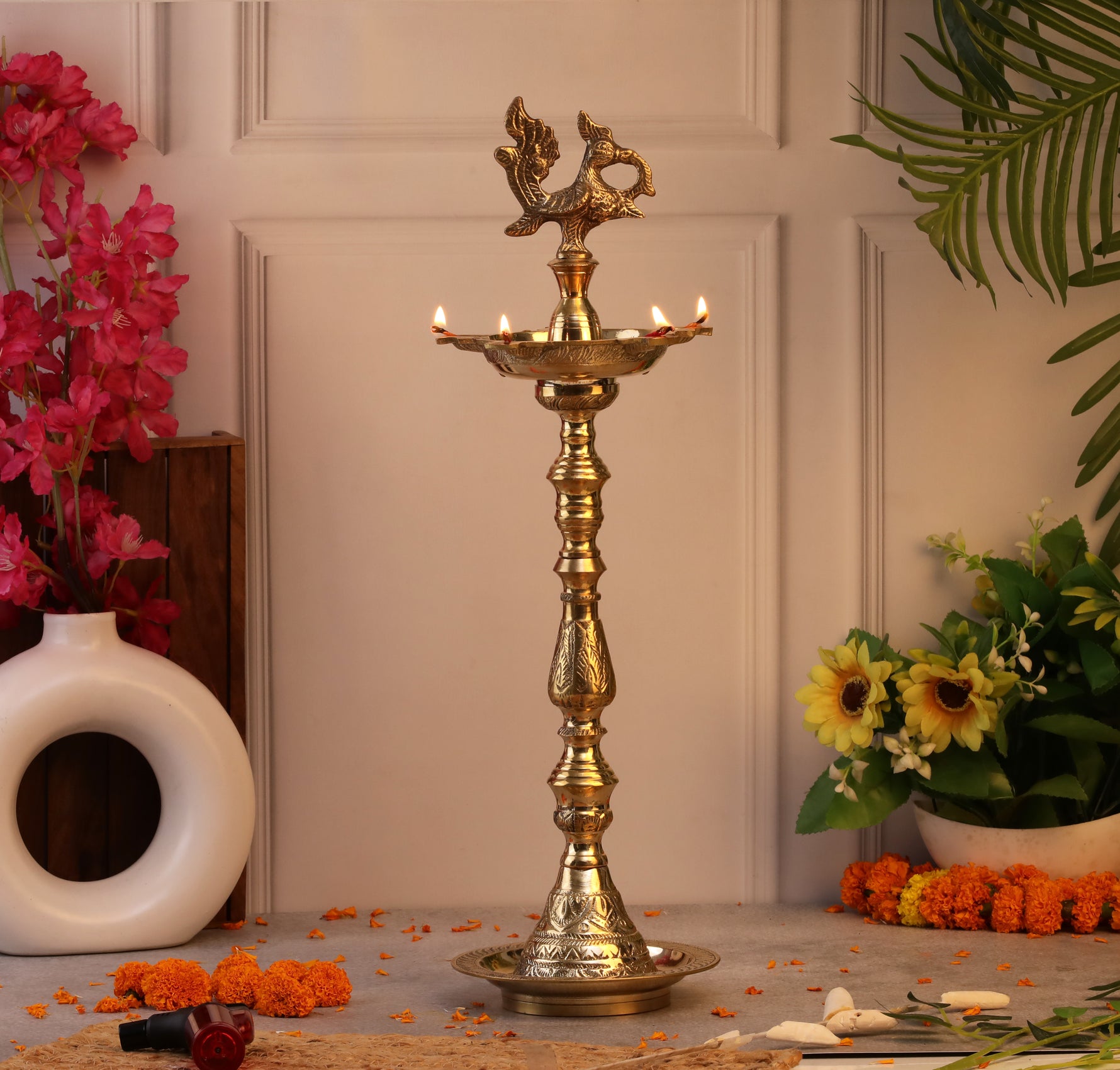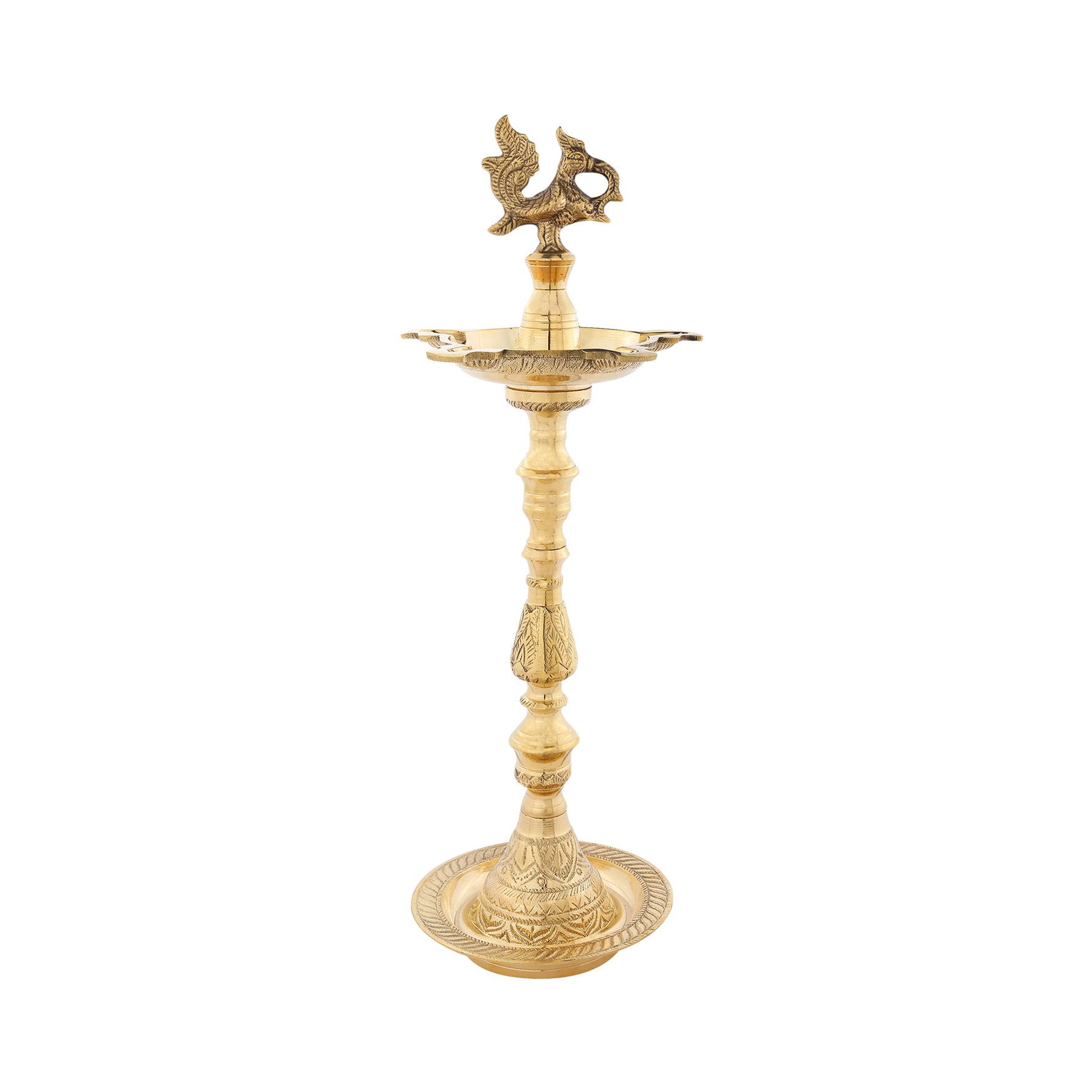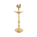 Shreeyaash Brass Peacock Lamp -This charming lamp, crafted in the elegant shape of a peacock, is perfect for adding a playful yet sacred glow to your pooja rituals. Its gleaming brass finish catches the light beautifully, creating a warm and inviting atmosphere that brightens any room.