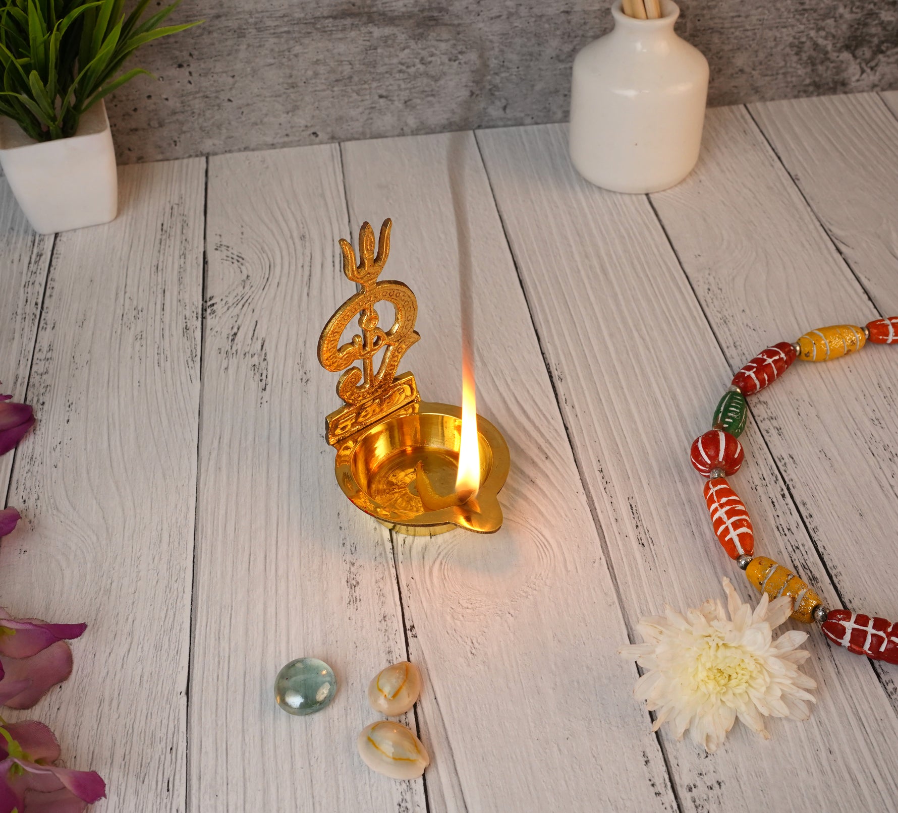 Beyond its spiritual value, the Tamil Om Diya serves as an elegant decorative element, reflecting cultural heritage and craftsmanship. Ideal for those who appreciate meaningful home accents, this brass diya is a timeless addition that enriches both your spiritual practice and interior environment.